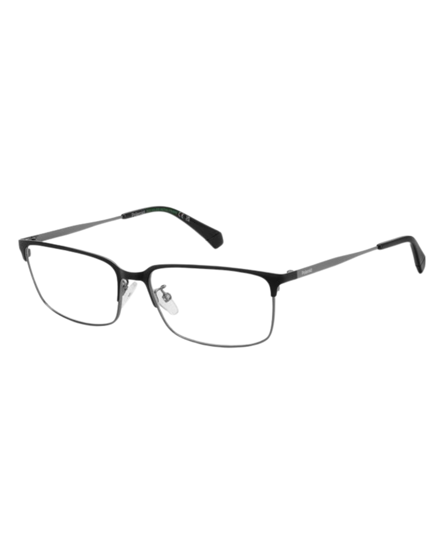 Armazón Polaroid negro rectangular de metal para hombre, ligero y elegante para uso diario.